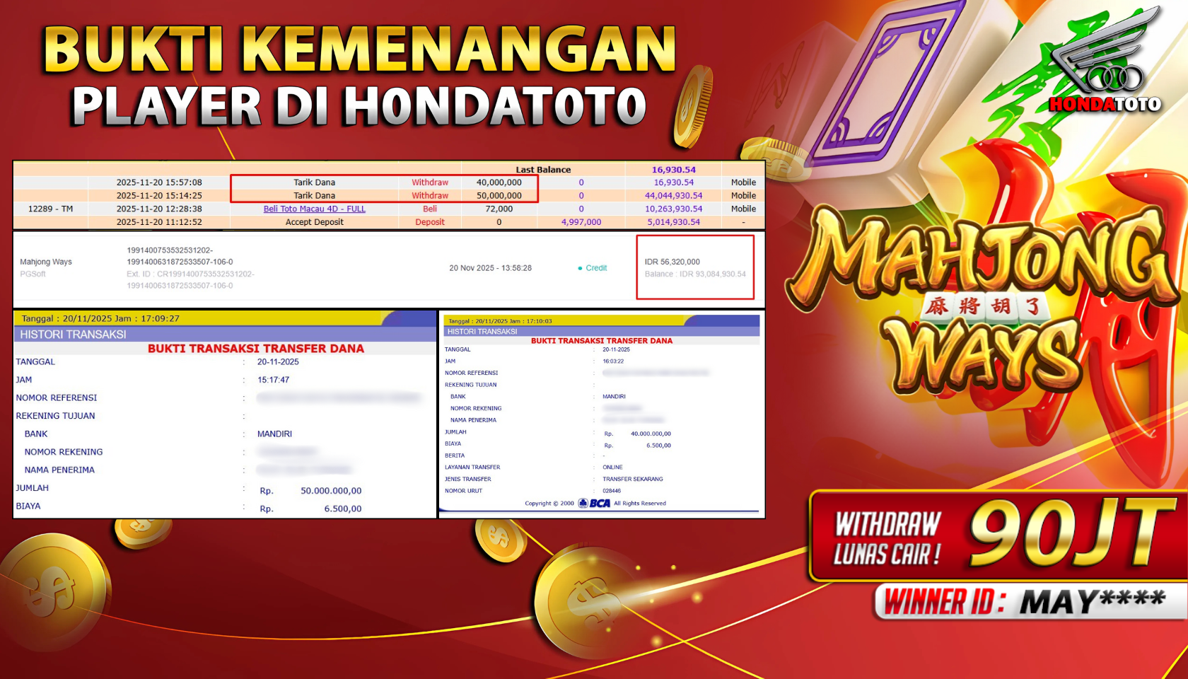 Bandar togel HONDATOTO merupakan bandar togel dan slot online yang membayar semua kemenangan member hingga lunas. Setiap pembayaran pada situs kami dilakukan dengan cara transfer ke rekening tujuan yang sudah di daftarkan pada situs togel online kami, Pembayaran hanya dapat di proses jika rekening yang di daftarkan telah valid dan dapat di transfer. Semua kemenangan member yang mendapatkan hadiah jackpot terbesar akan kami posting agar semua pemain dapat melihat bandar situs terpercaya HONDATOTO ini membayar semua kemenangan member hingga lunas. Setiap postingan yang kami posting akan kami lakukan sensor pada nomor rekening 4 digit dan nama rekening untuk menjaga privasi dan kerahasiaan member. Postingan Jackpot yang kami posting agar member atau pemain yang belum pernah bermain bisa melihat bandar togel Bukan Kaleng Kaleng Seperti HONDATOTO ini, Semua postingan jackpot yang kami posting dapat di lihat data keasliannya melalui nomor reff yang di tunjukan pada bank atau mbanking saat kita melakukan transfer.